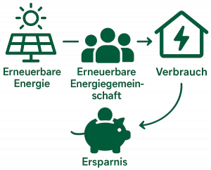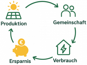 - Mitglieder beziehen den überschüssigen Strom direkt aus der Gemeinschaft.
